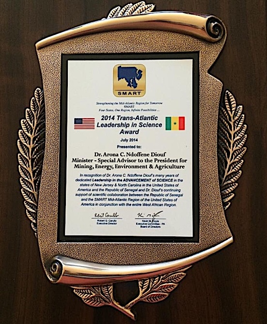 Le Prix d’Excellence 2014 TRANS-ATLANTIC LEADERSHIP IN SCIENCE AWARD décerné au Professeur DIOUF au Capitol Hill Washington par des Sénateurs Américains
